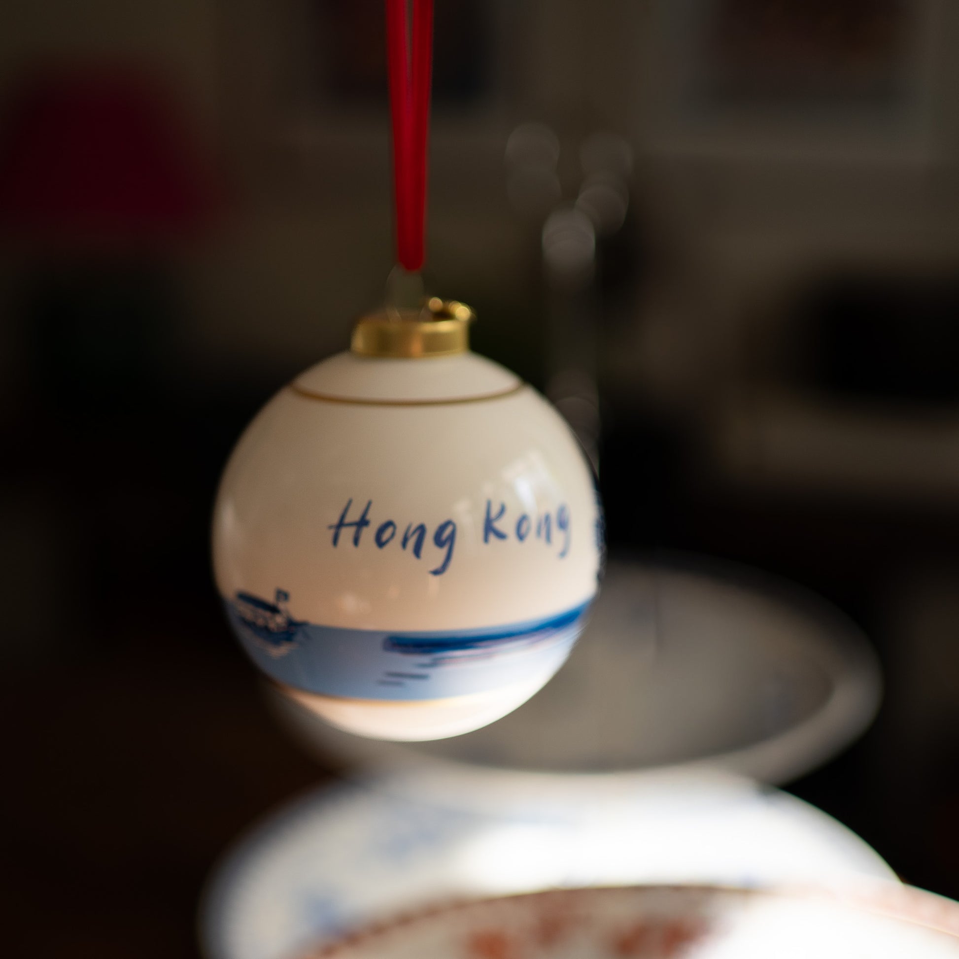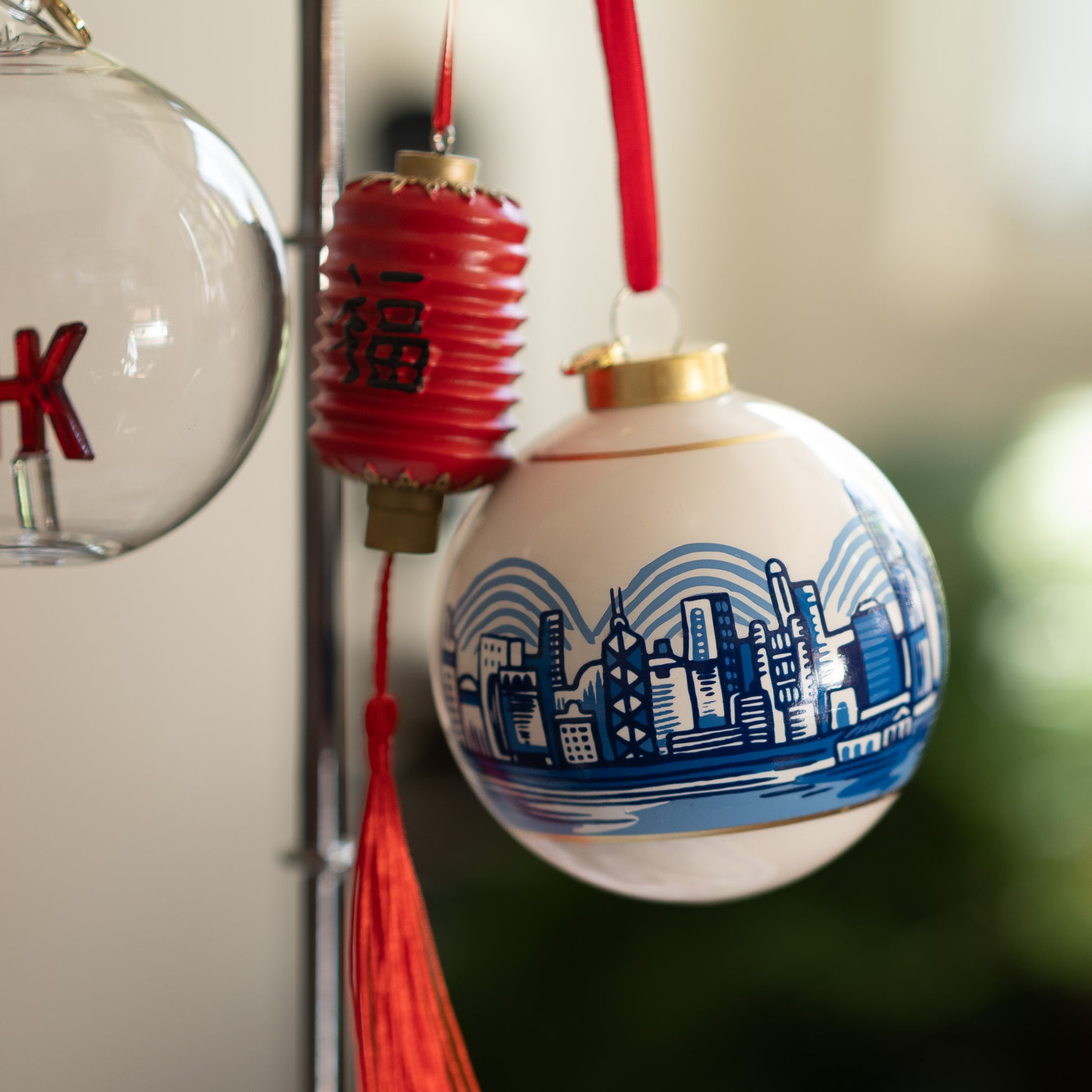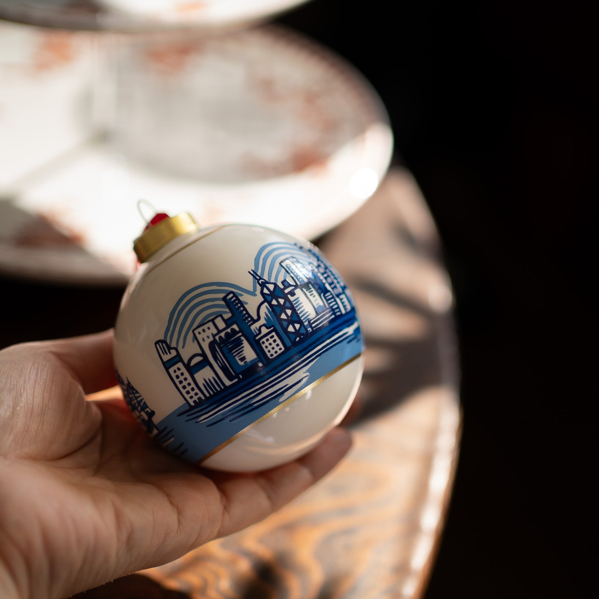 深いブルーを基調にスターラインとジャンク船が描かれ、海風を感じるような軽やかさと都市のエネルギーをイメージしたオーナメントです。