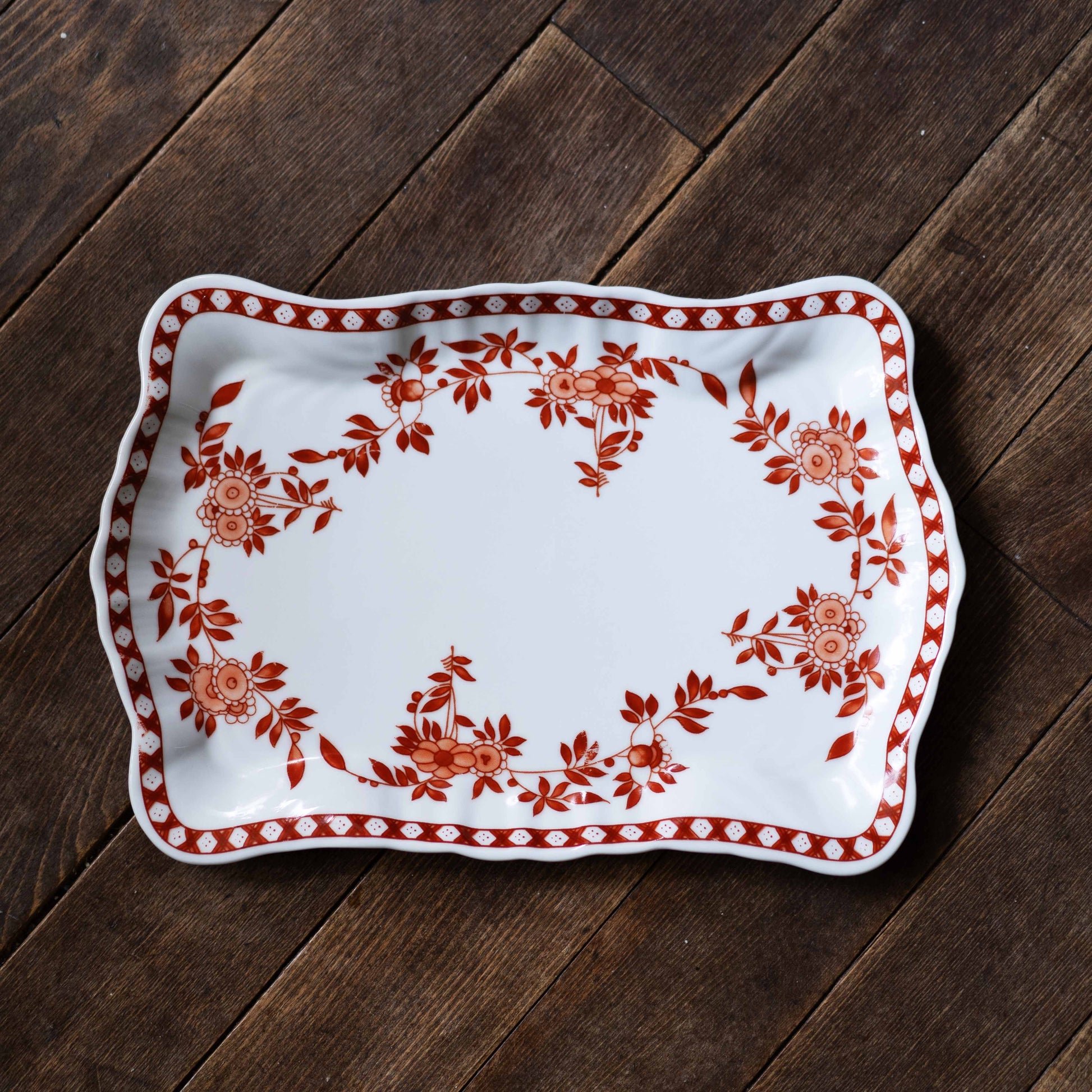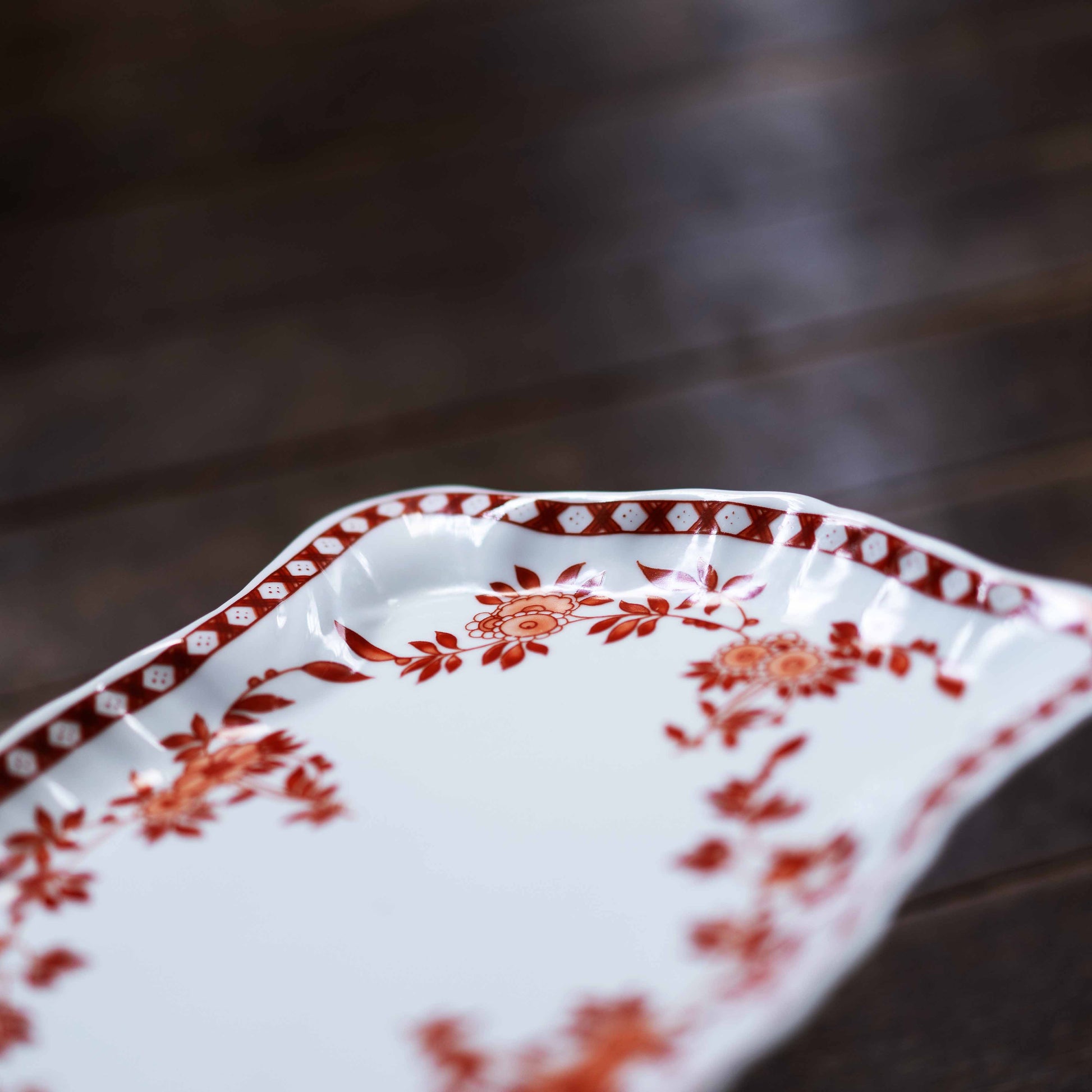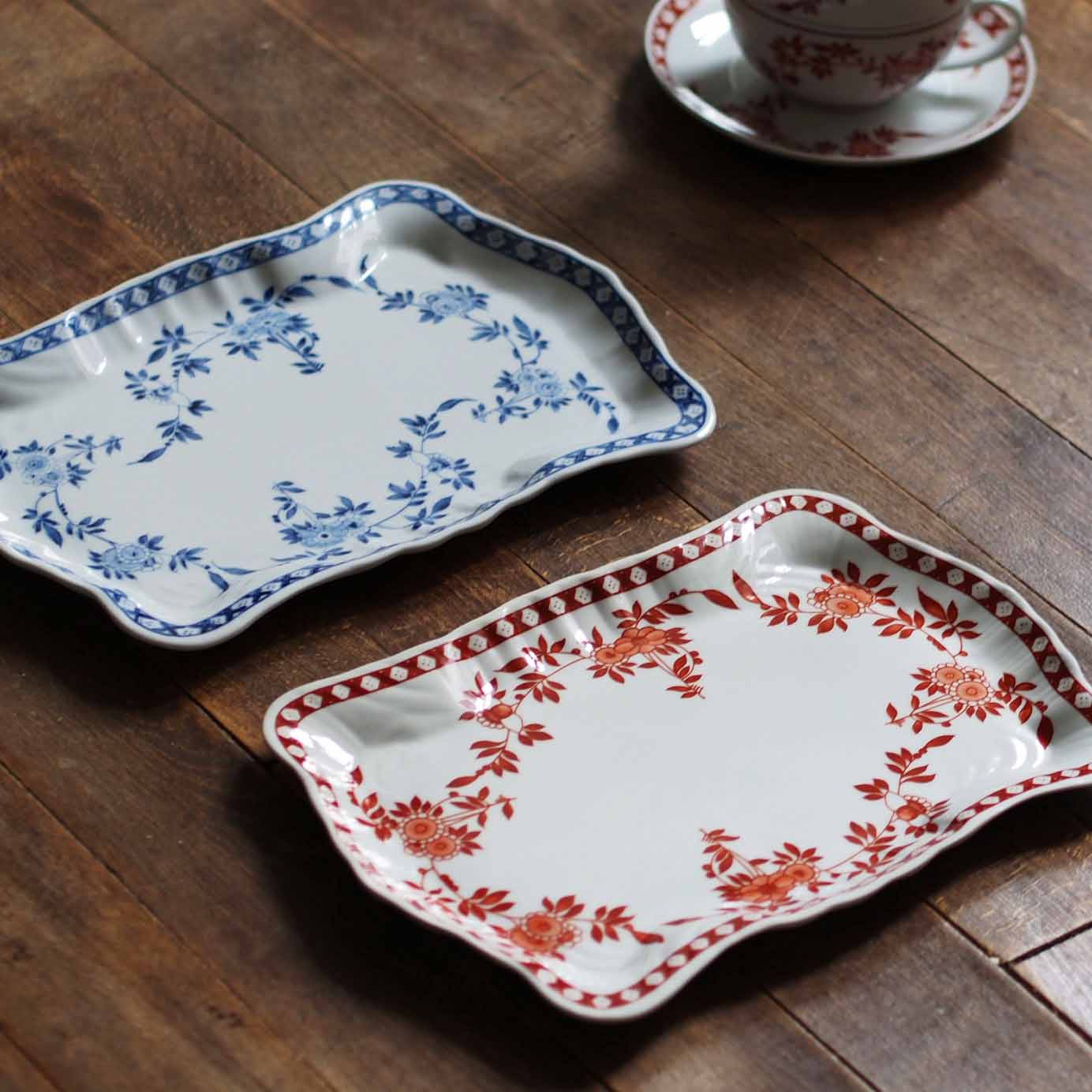 1975年、香港総督夫人が粤東磁廠に持ち込んだデザインをもとに、香港ペニンシュラホテルがオーダーした絵柄。華やかでエキゾチックな雰囲気が特徴です。