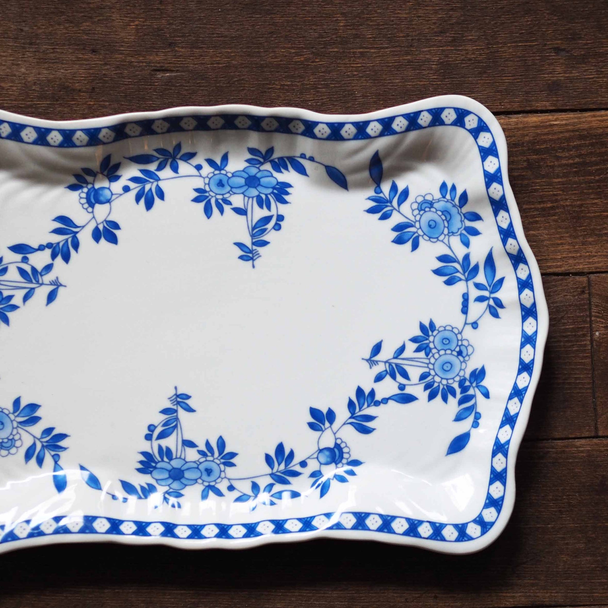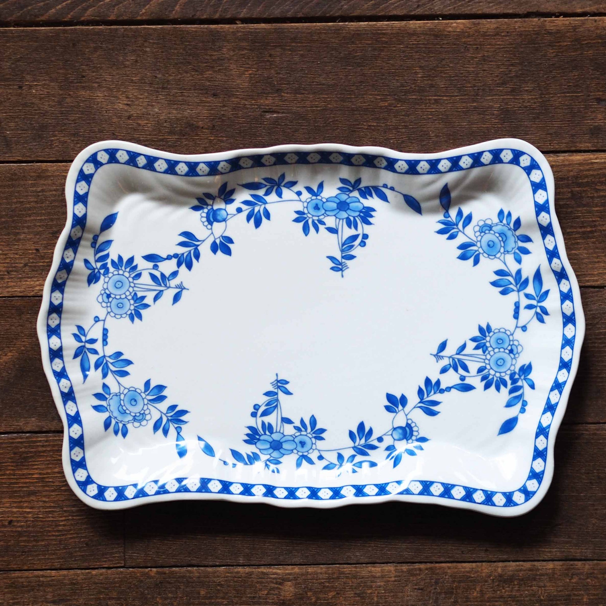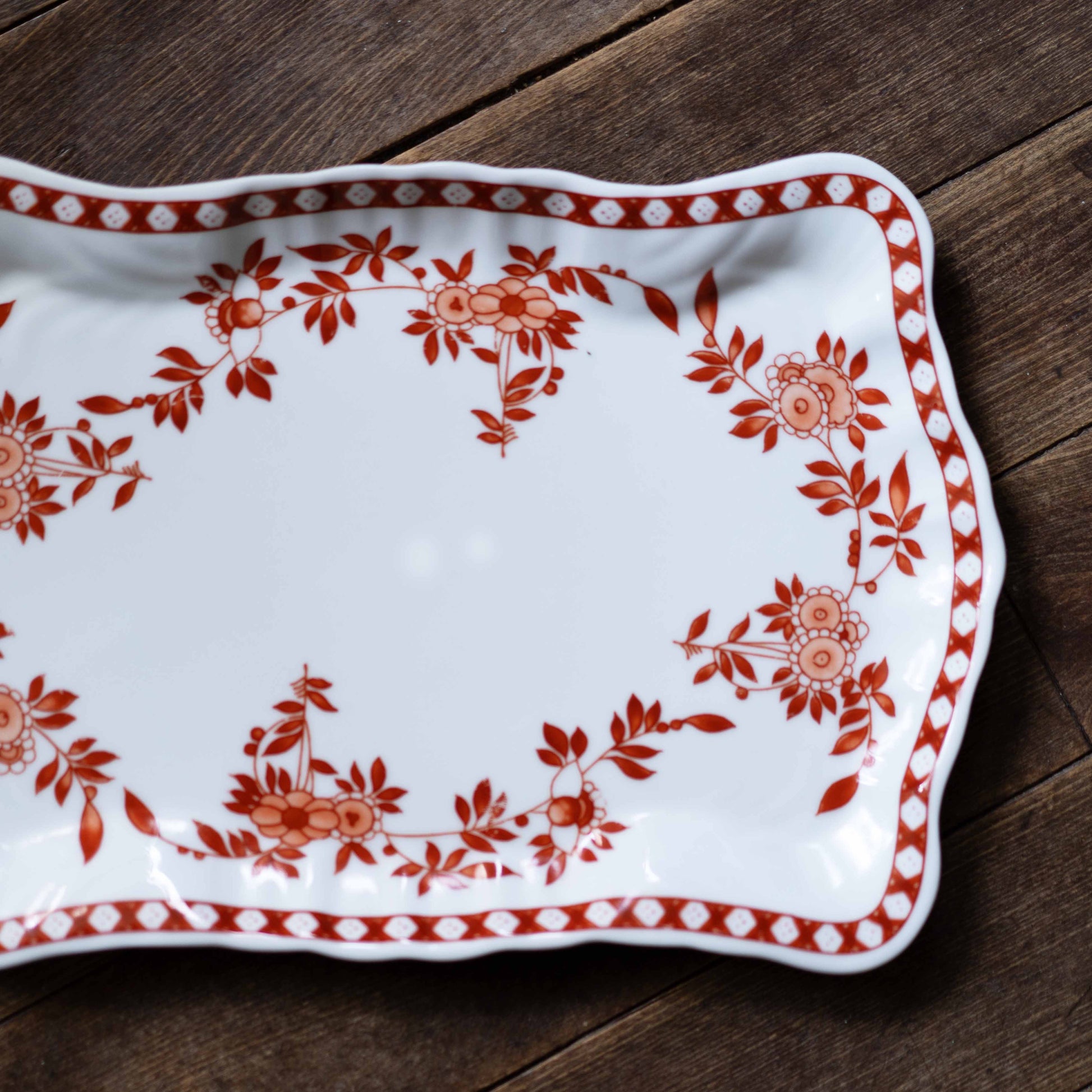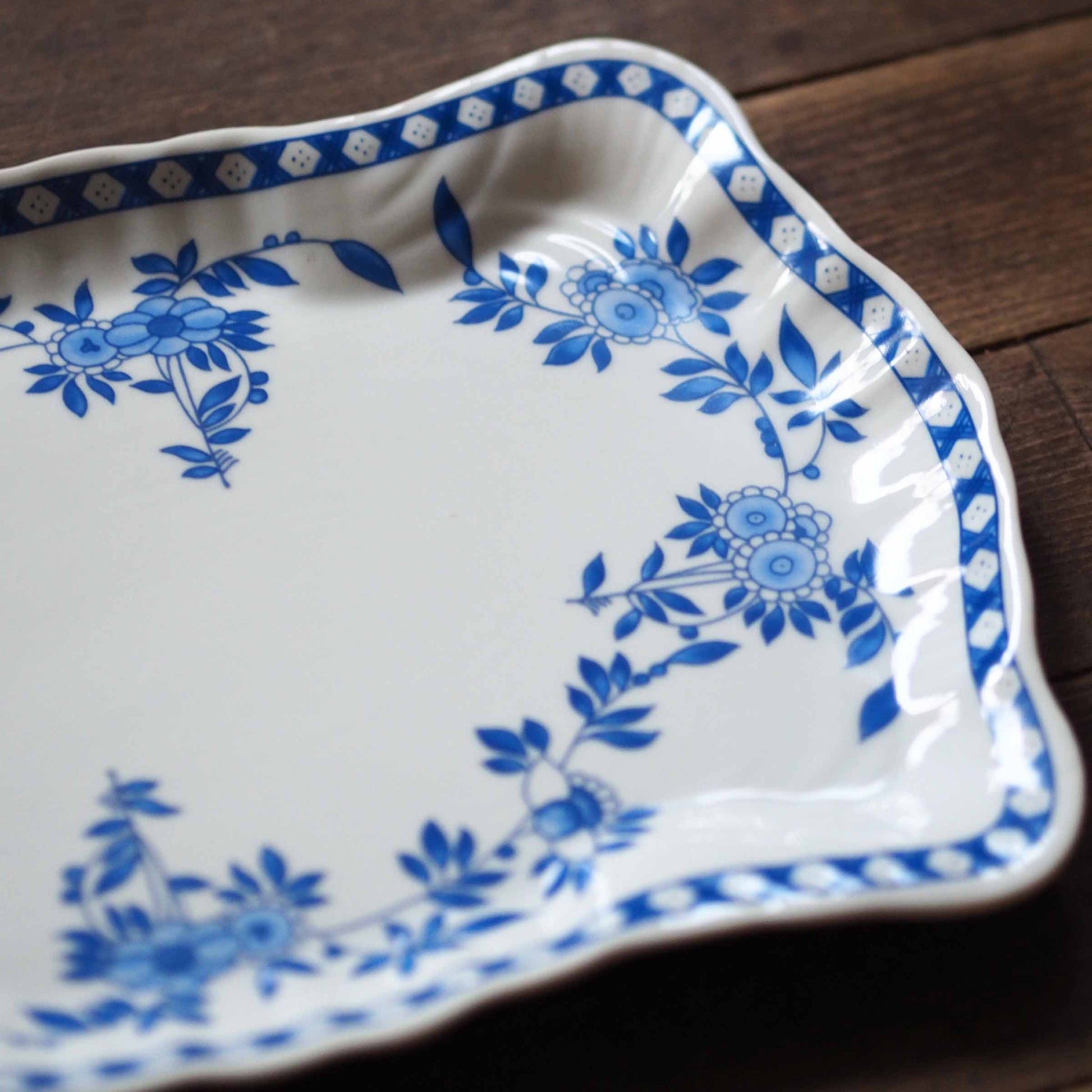 1975年、香港総督夫人が粤東磁廠に持ち込んだデザインをもとに、香港ペニンシュラホテルがオーダーした絵柄。華やかでエキゾチックな雰囲気が特徴です。