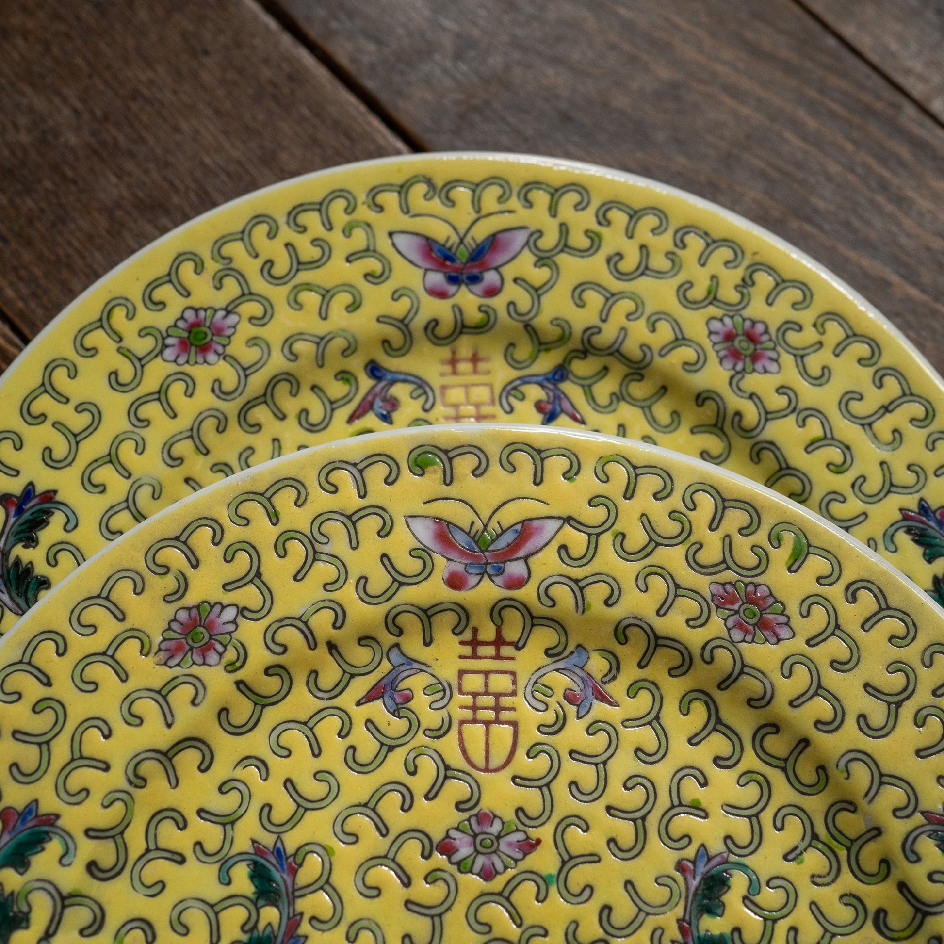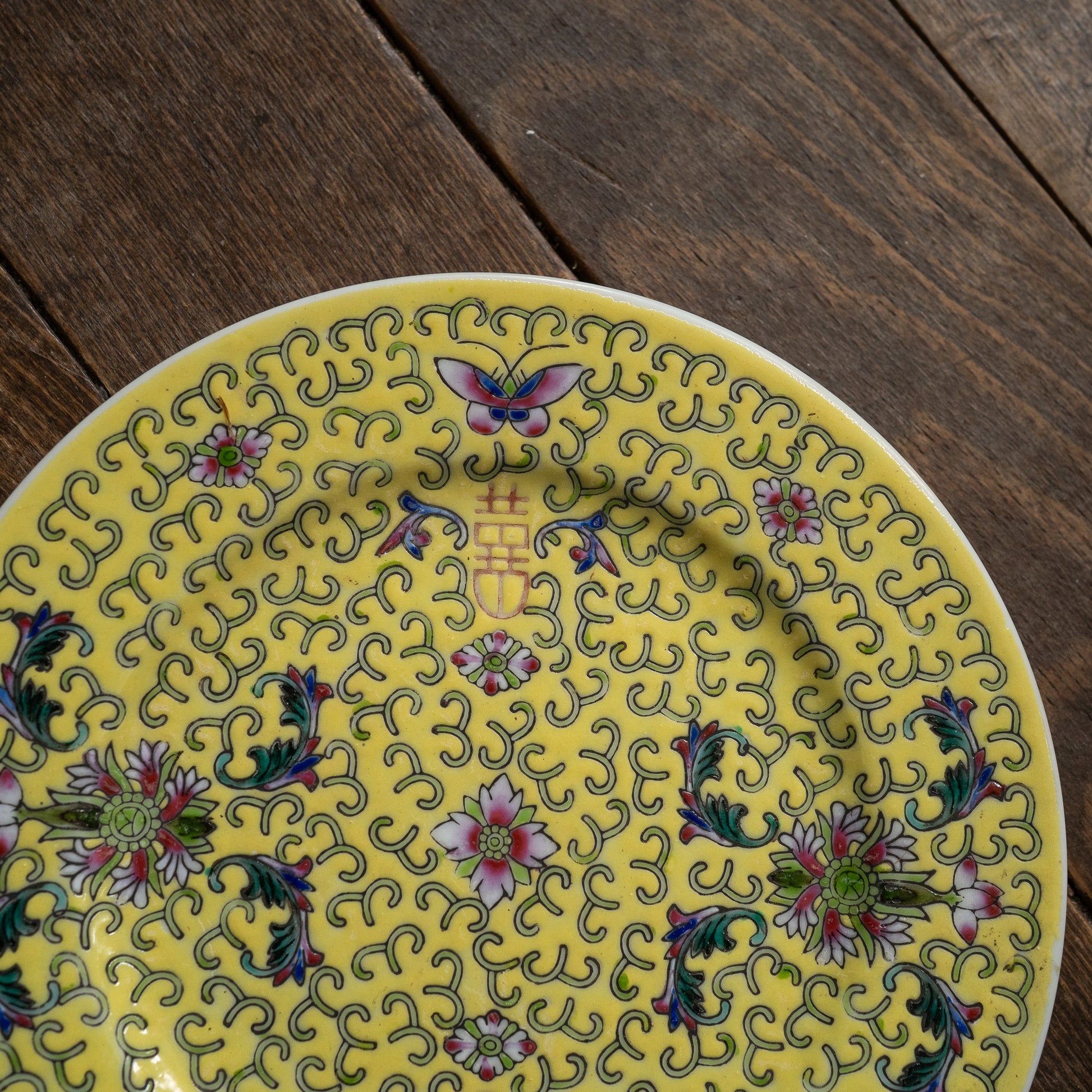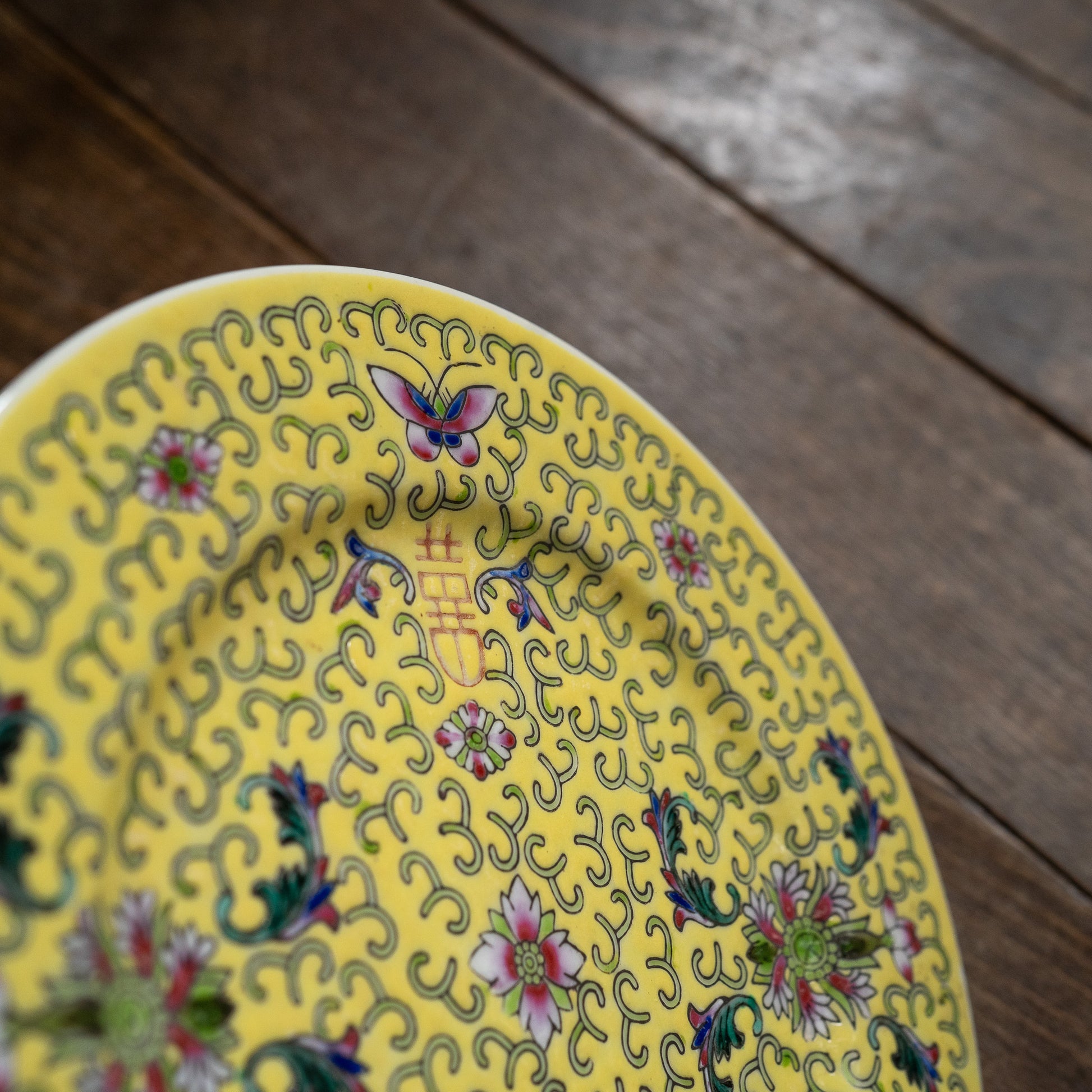 黄色の丸皿18センチ『Butterfly』 景徳鎮