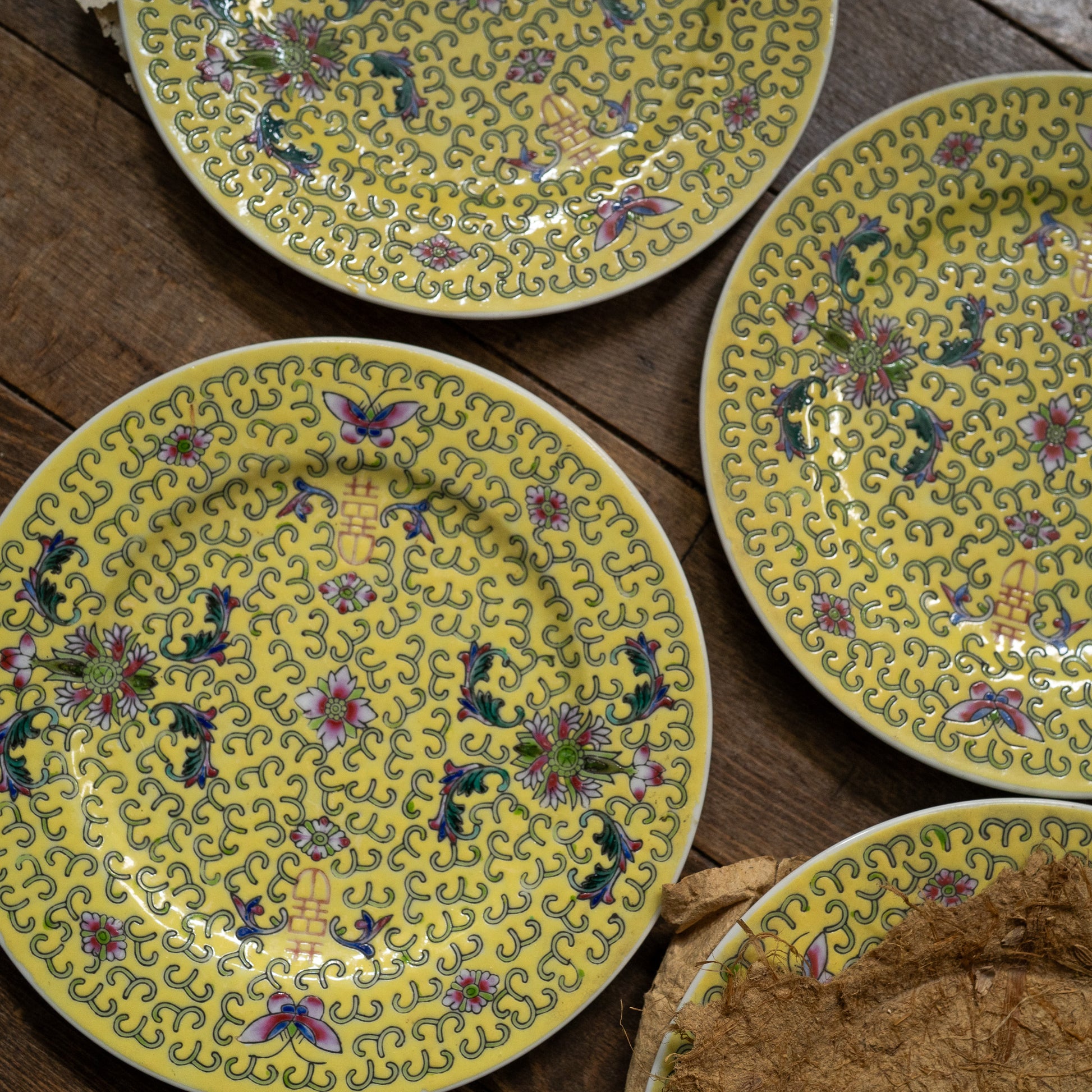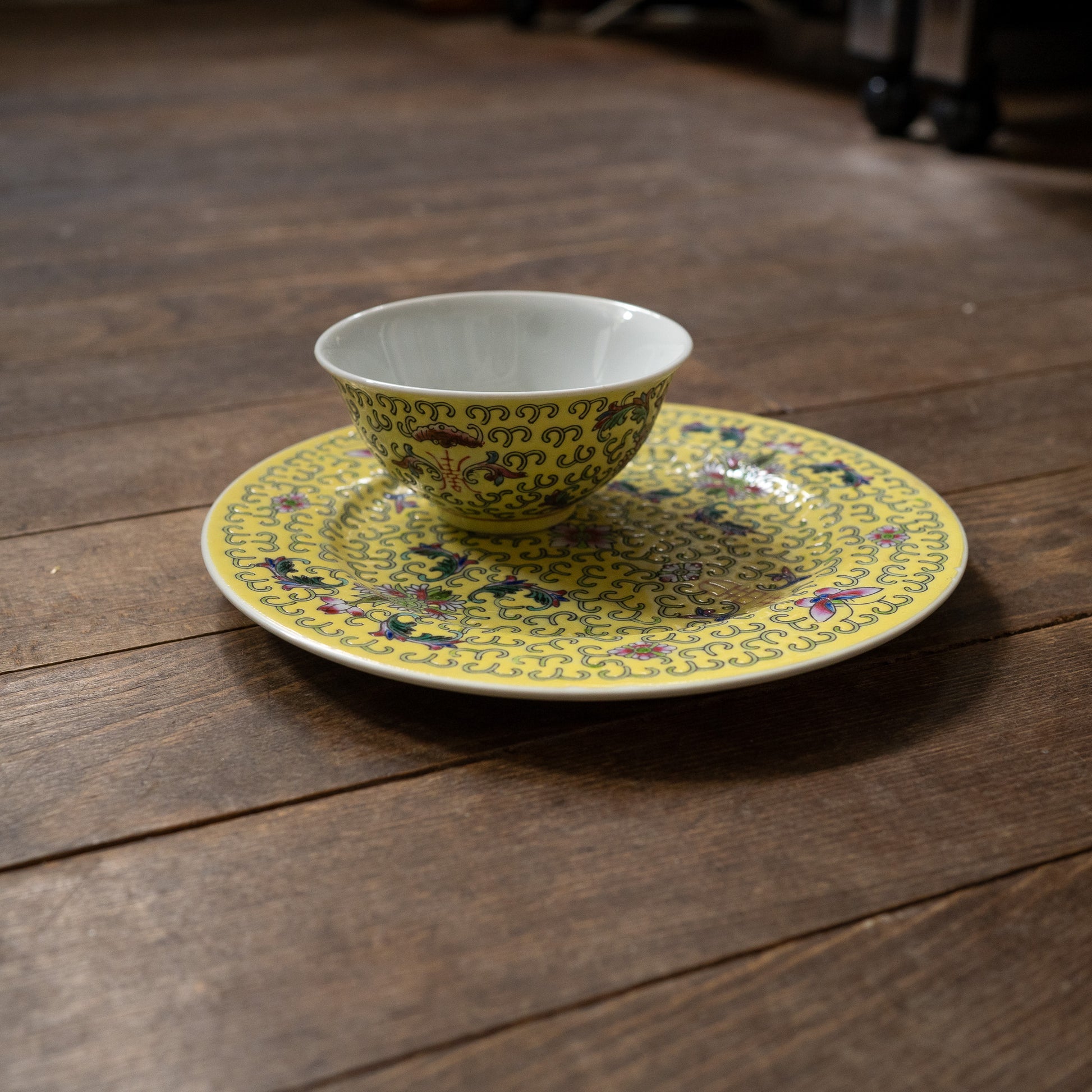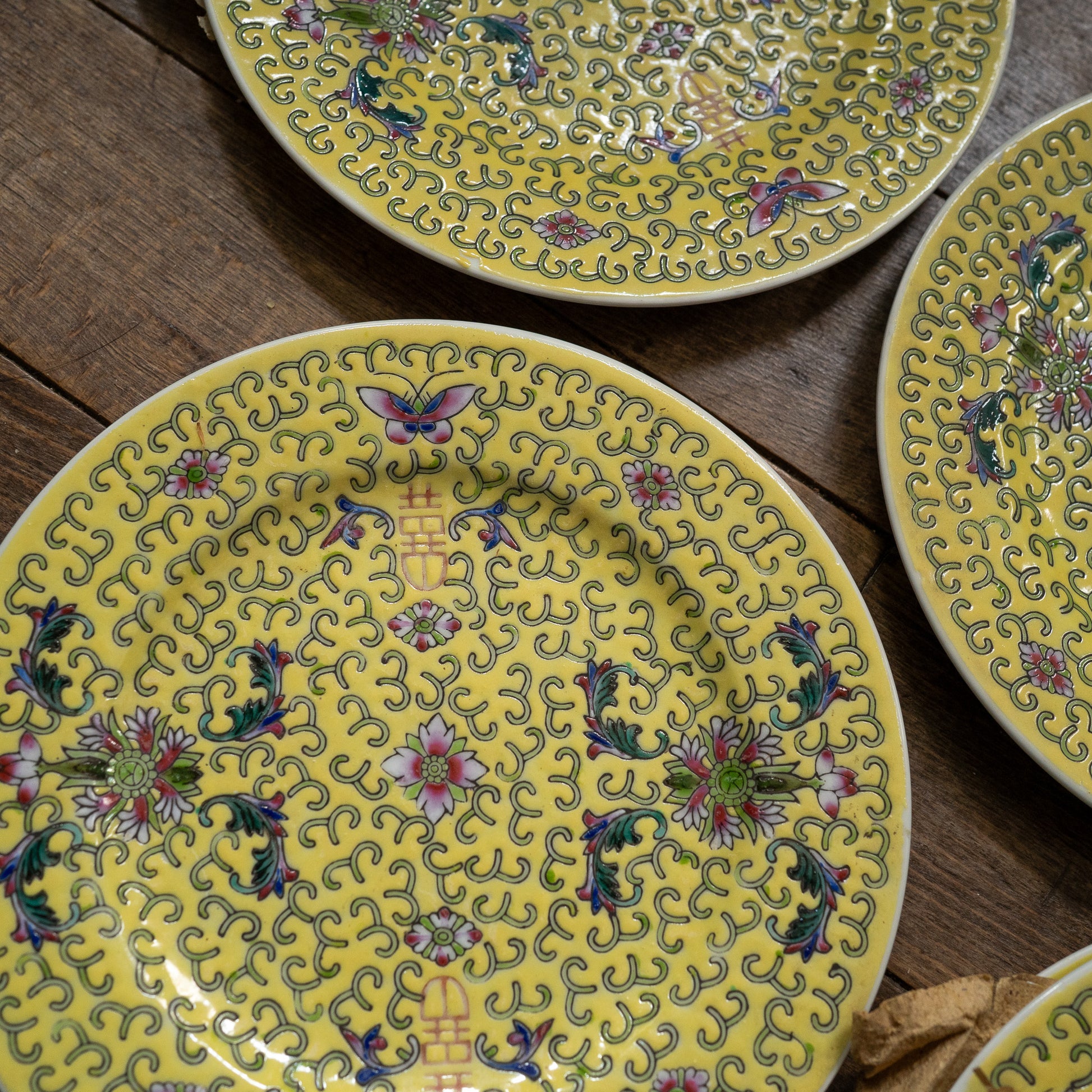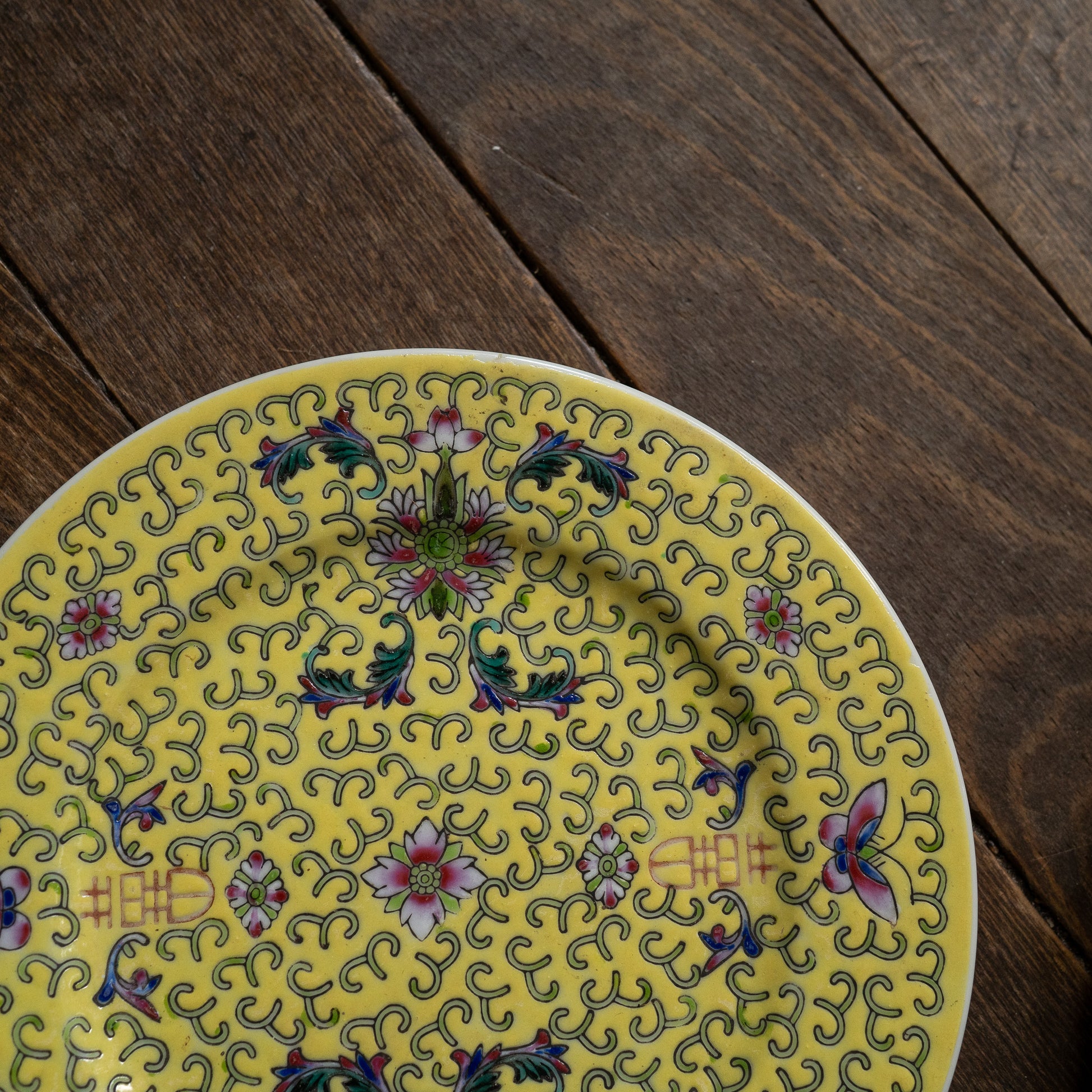黄色の丸皿18センチ『Butterfly』 景徳鎮